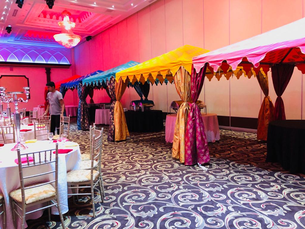 Our Vivah Tents collection is the first of it’s kind in Canada to offer luxury designer tent interiors, furniture & accessories for all occasions. Offering distinctive Indian and Moroccan themed interior tent designs for all Outdoor and Indoor occasions. Variety of tent designs available to suit all budgets. Our unique collection provides bold colours and design to create the perfect ambiance for you and your guests.